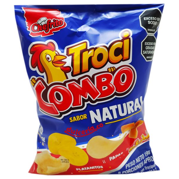 El troci combo familiar trae una deliciosa mezcla de papa freída, con trocipollo, platanitos, pasabocas chicarrón y sal, viene 1 unidad, 195 g.